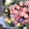 Букет из нерине, пионовидных роз Бомбастик и махровых лизиантусов в Киржаче